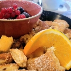 Auch der Kaiserschmarrn als Dessert war genauso wie man sich ihn wünscht. Es steht dazu Apfelmus oder warme Zwetschgen mit Beeren zur Auswahl. Top.