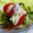 Serviert wurde dann ein kleiner Salat, in dieser Zusammenstellung hat er wohl ganzjährig Saison. Eisbergsalat, Rucola, Gurke, Tomate, Paprika und wie erwartet: Fertigdressing. Sollte wohl an Joghurt erinnern. Wenigstens waren die festen Bestandteile frisch.