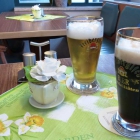 Unsere Gerichte werden gleich mit aufgenommen. Die gut gekühlten Biere kurz drauf serviert.