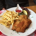 Die Pommes waren zwar von der dünneren Art, aber richtig schön knusprig und innen noch weich. Sie waren überhaupt nicht fettig und einwandfrei mit Salz versorgt worden. Das Schnitzel war wellig gebraten, nicht fettig und die Panade schön knusprig. Vom würzen her passte es auch. Schön hier, dass der Ketschup in einem Schälchen serviert wird, gefällt uns sehr gut.