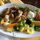 Wir wählen die Calamari mit Gemüse und Kartoffeln und Salat (14,80€). Die Calamari sind paniert und zart ausgebacken. Das Gemüse und die Kartoffeln jedoch geschmacklos und total verkocht. Das gleiche passierte mit der gemischten Fischplatte (19,50€). Hier wusste man gar nicht mehr um welche Fischsorte es sich hier handelte. Alles paniert und verkocht.