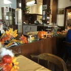 Der Biergarten im Innenhof - obwohl schönes Wetter- ist bereits abgebaut. Innen ist alles wie aus den 70iger Jahren. Steinfußboden, steife Holzstühle, abgeteilte Nischen und Nippes als Dekomaterial. Eine Familienlokalität für alle Generationen, Opa und Oma begleichen die Rechnung. Hier gibt es noch die guten alten Kühlschränke für die Kühlung der Flaschengetränke.