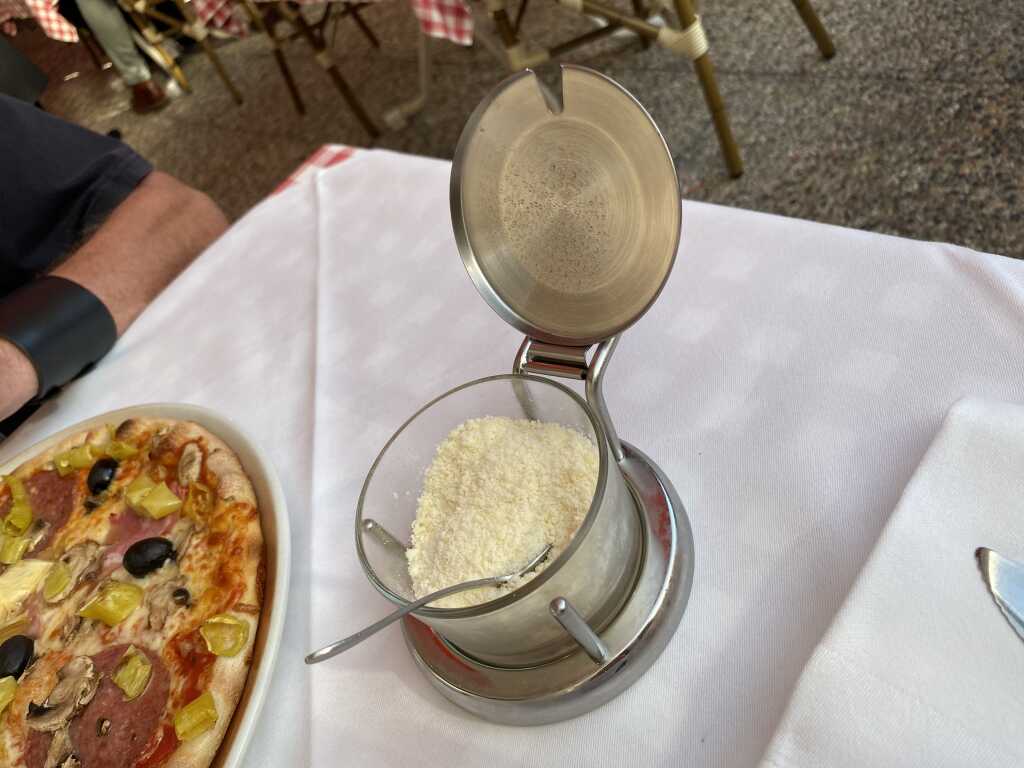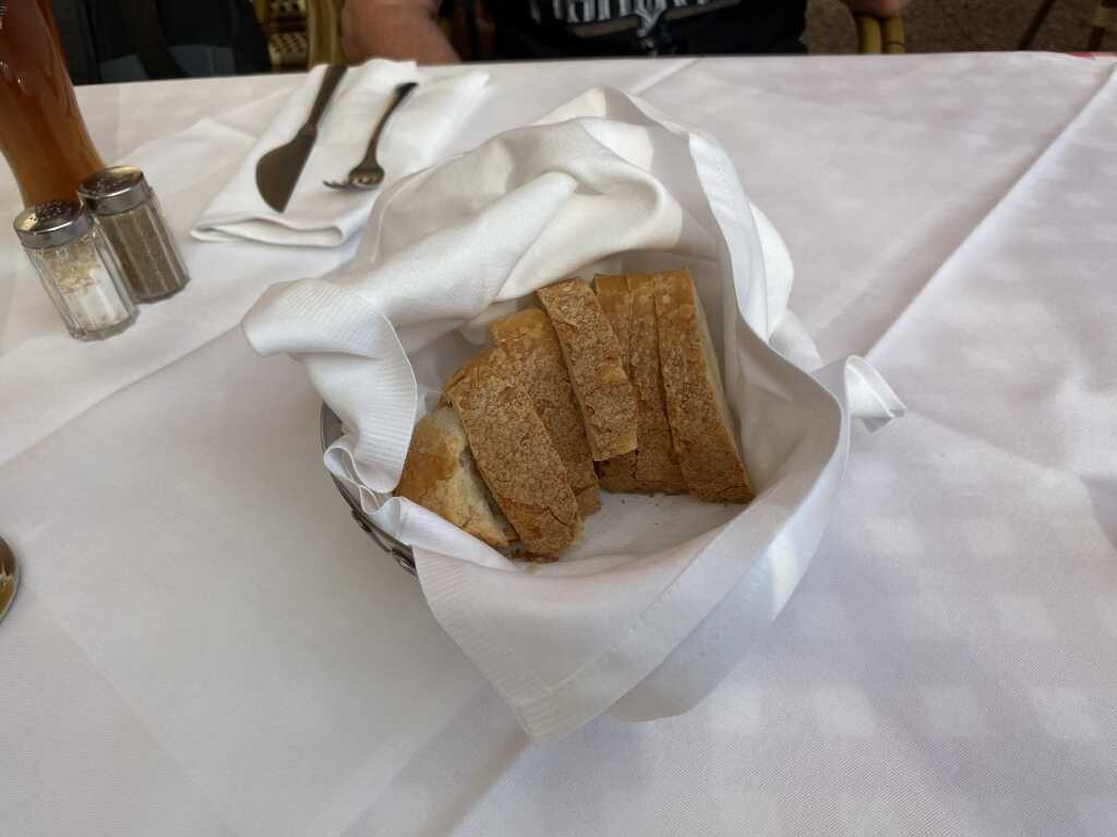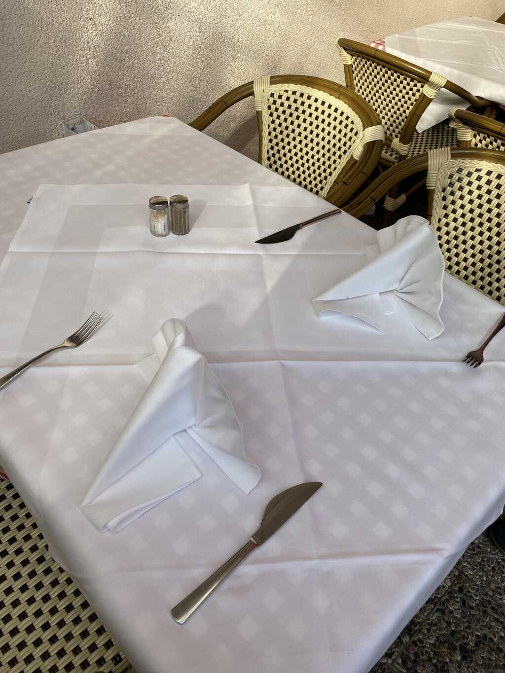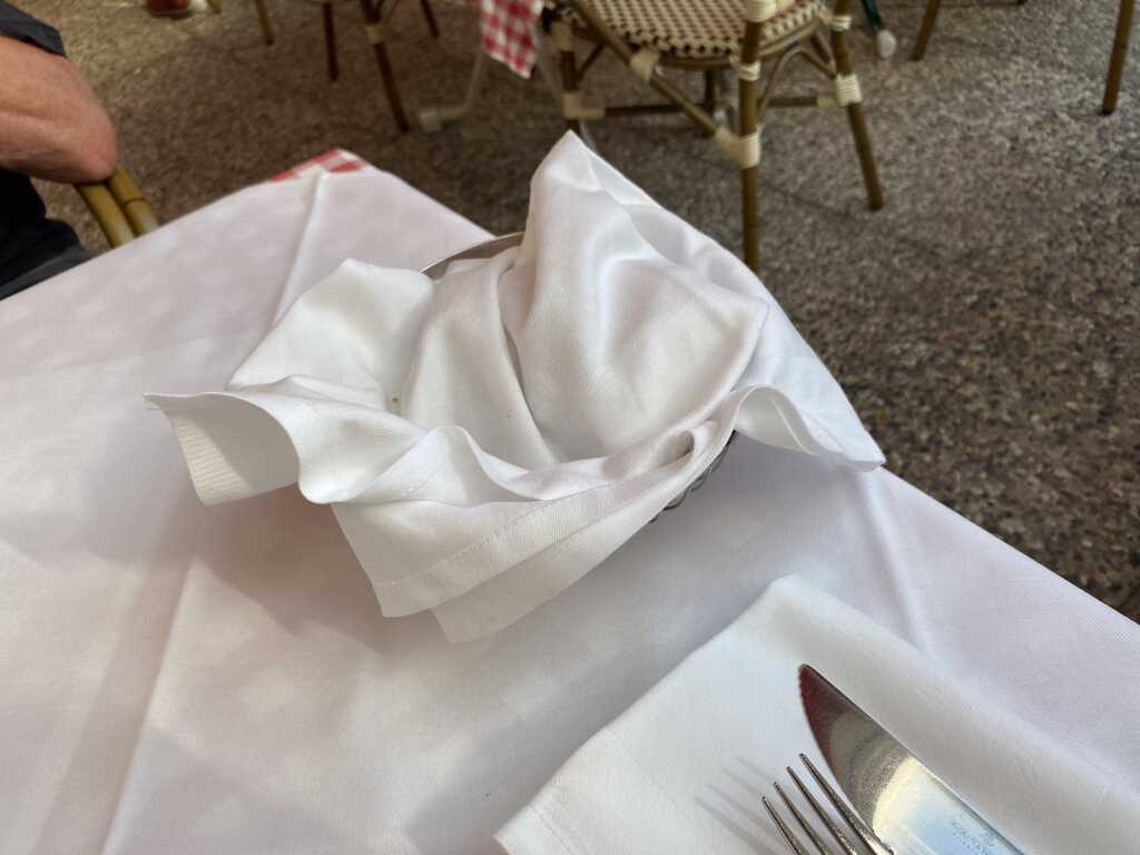Das Besteck bekamen wir in einer Serviette mit Tasche auf der auch das Logo und der Name vom Lokal aufgedruckt war.