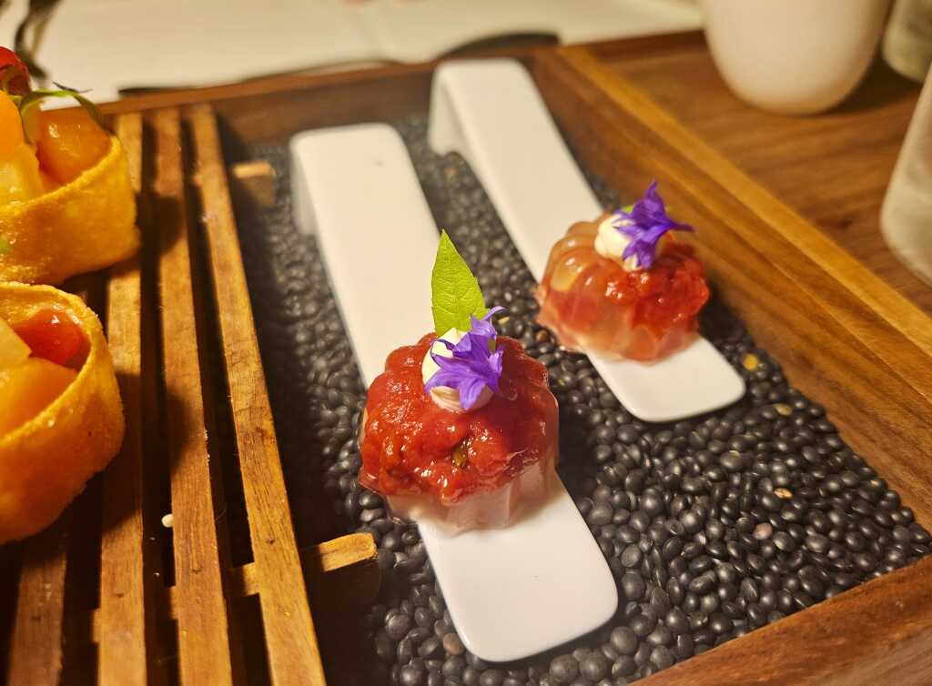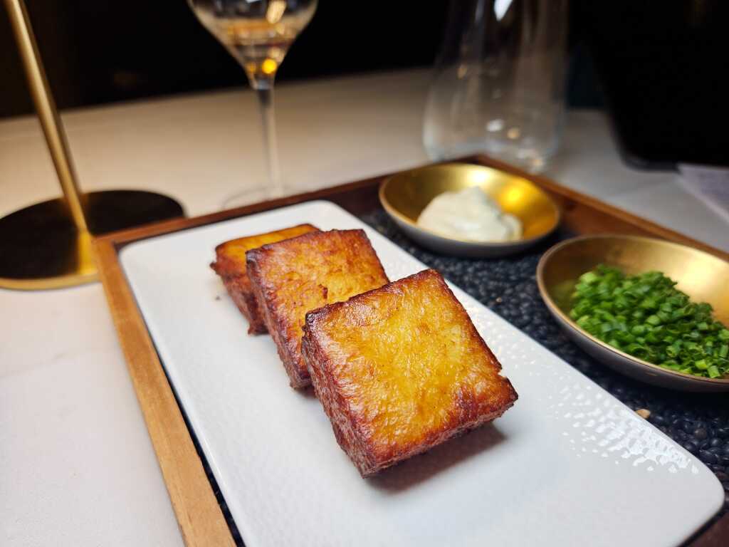 Zusammen mit der loungigen, angenehm im Hintergrund bleibenden Musik ergibt das ein gechilltes Ambiente, ohne dass nicht ab und an auch Stimmengewirr durch das gemischte, internationale Publikum aufkam, das sich zu gleichen Teilen aus Foodies und Paaren zusammensetzte, die sich etwas leisten wollen und können. Das Preisgefüge ist erwartungsgemäß erhöht, aber für mein Empfinden angemessen, besonders angesichts des in den Gerichten steckenden Arbeitsaufwandes.