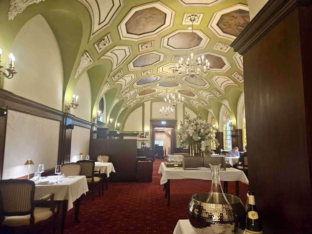 Als sich mein Kollege verabschiedet hatte, saß ich beseelt unter dem mit heiteren Szenen geschmückten Tonnengewölbe, derweil die Tische für das Frühstück eingedeckt wurden.